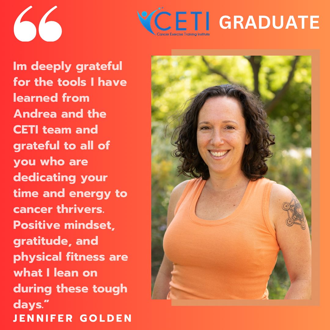 Join Andrea Leonard, President and Founder of the Cancer Exercise Training Institute for this CES 4-week immersion program, including business & marketing sessions with CETI business advisor Greg Hendrickson. Andrea & Greg will conduct "live" zoom meeting sessions two to three times per week during the class.